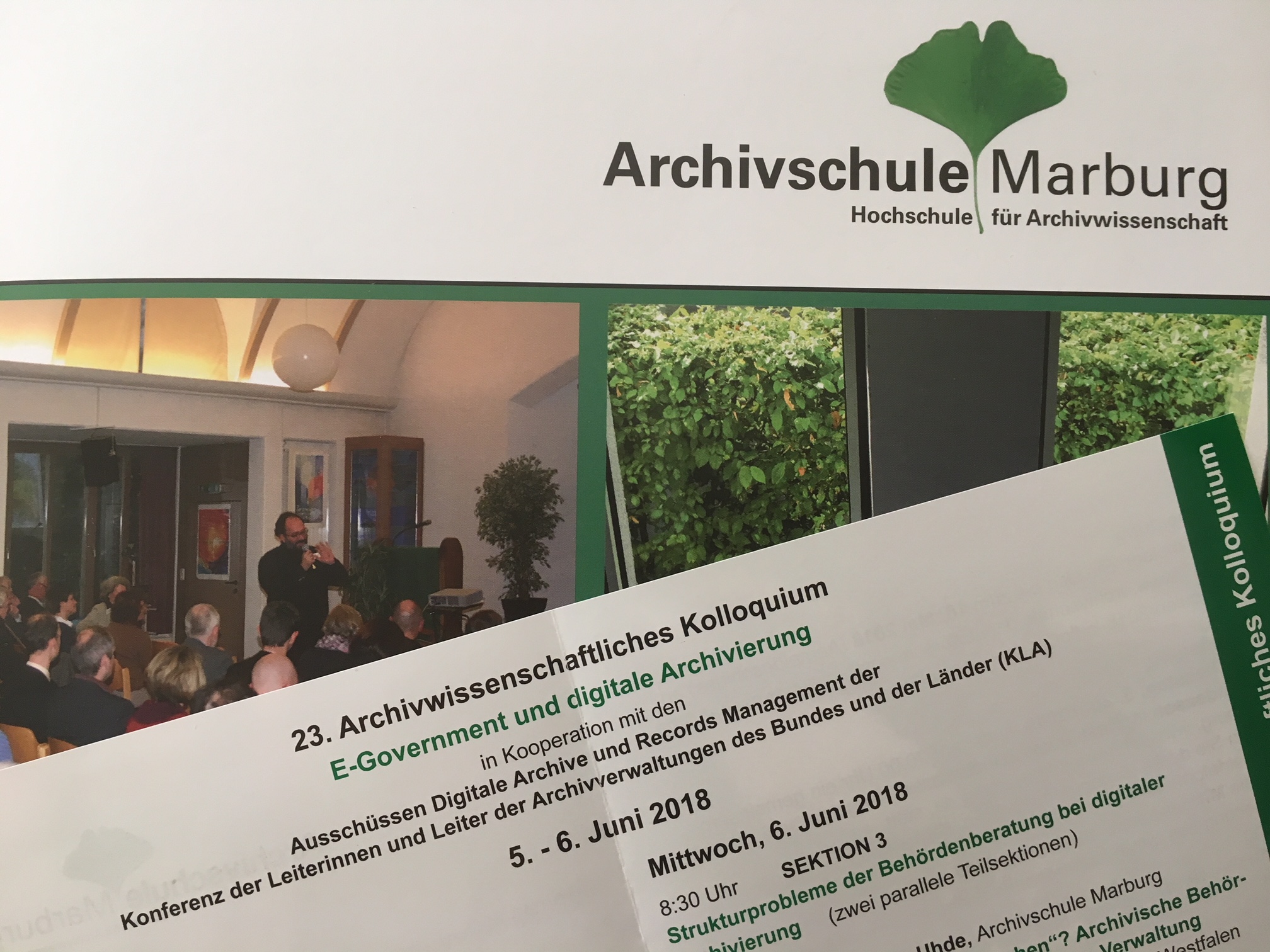 Am 5. und 6. Juni 2018 fand in Marburg das 23. Archivwissenschaftliche Kolloquium statt. 200 Archivarinnen und Archivare hörten zwei Tage lang über 20 Vorträge zu „E-Government und digitale Archivierung“ und führten lebhafte Diskussionen. Auch das Forum Agile Verwaltung war eingeladen zu einem Referat über „Die digitale Akte und die Expertenrolle der Archivwissenschaft“.
