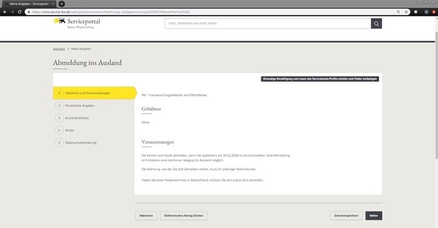 Im Rahmen der Neugestaltung des staatlich-kommunalen Verwaltungsportals service-bw hat das Land Baden-Württemberg unter Federführung des Innenministeriums (IM) den Kommunen im vergangenen Jahr u.a. einen umfangreichen Werkzeugkasten zur Verfügung gestellt, der gemeinsam nutzbare Infrastrukturdienste wie z.B. ein zentrales Bürgerkonto, einen eID-Service, Modellierungswerkzeuge zur Abbildung von Geschäftsprozessen sowie Ausfüllassistenten für Formulare umfasst. Diese Komponenten können auch für externe Verfahren und Portale genutzt werden. Ziel war es, durch die zentrale Bereitstellung der Infrastrukturkomponenten elektronische Verwaltungsdienstleistungen übergreifend auf staatlicher und kommunaler Ebene auszubauen und so perspektivisch den Anschluss an den geplanten Portalverbund zwischen Bund und Ländern zu gewährleisten.