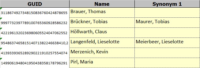 Manche DMS speichern sogar noch die ehemaligen Namen von vor der Umbenennung in einem Feld. Dann kann man auch nach einer Umbenennung noch nach dem alten Namen suchen. In unserem Beispiel sucht der Anwender nach “Meierbeer”, weil er diesen Namen noch im Kopf hat, und findet problemlos die Person mit dem neuen Namen “Langenfeld”. So etwas nennt man “lokale Synonyme”, und nur die crème de la crème der Systeme kann das.