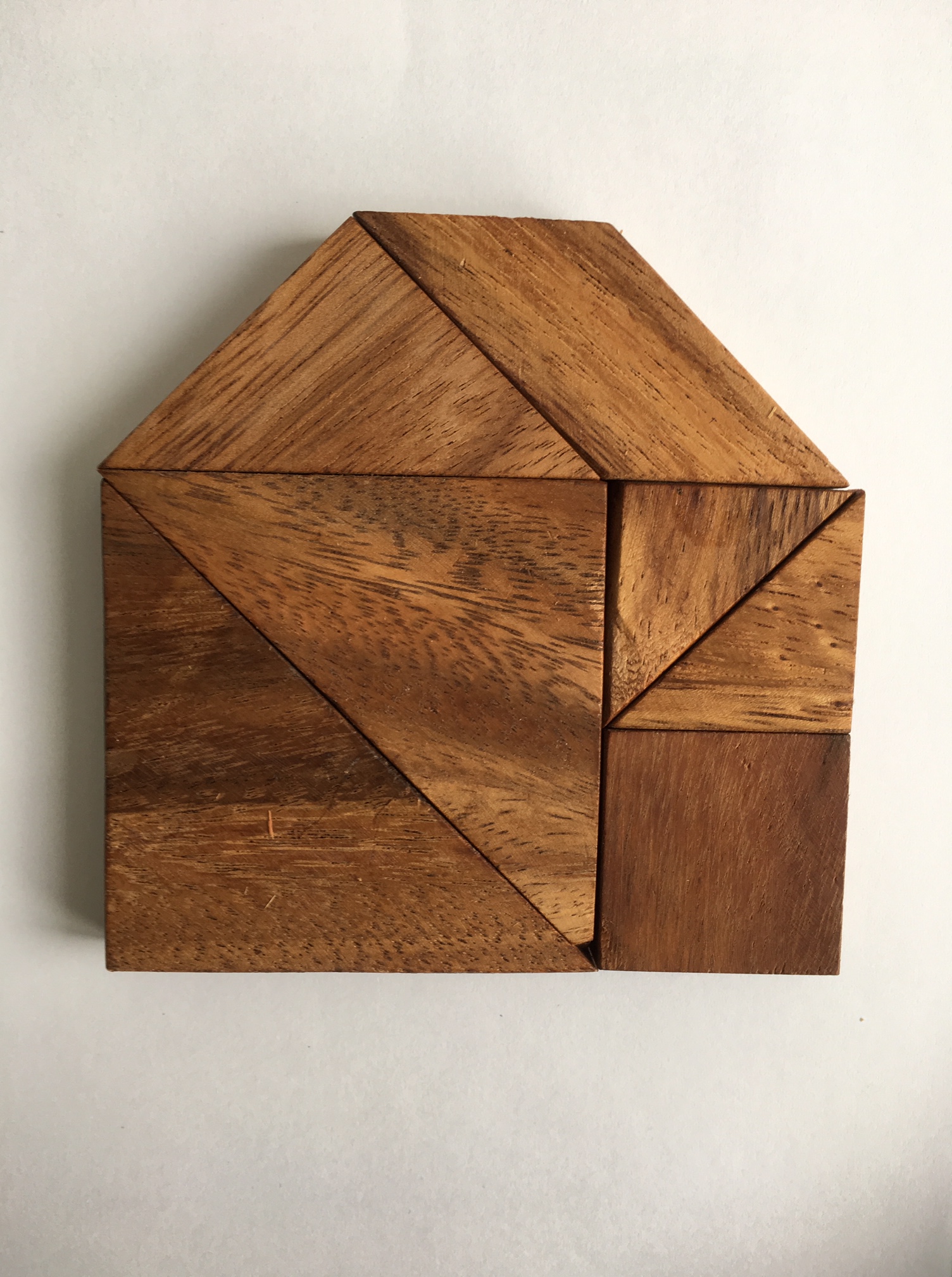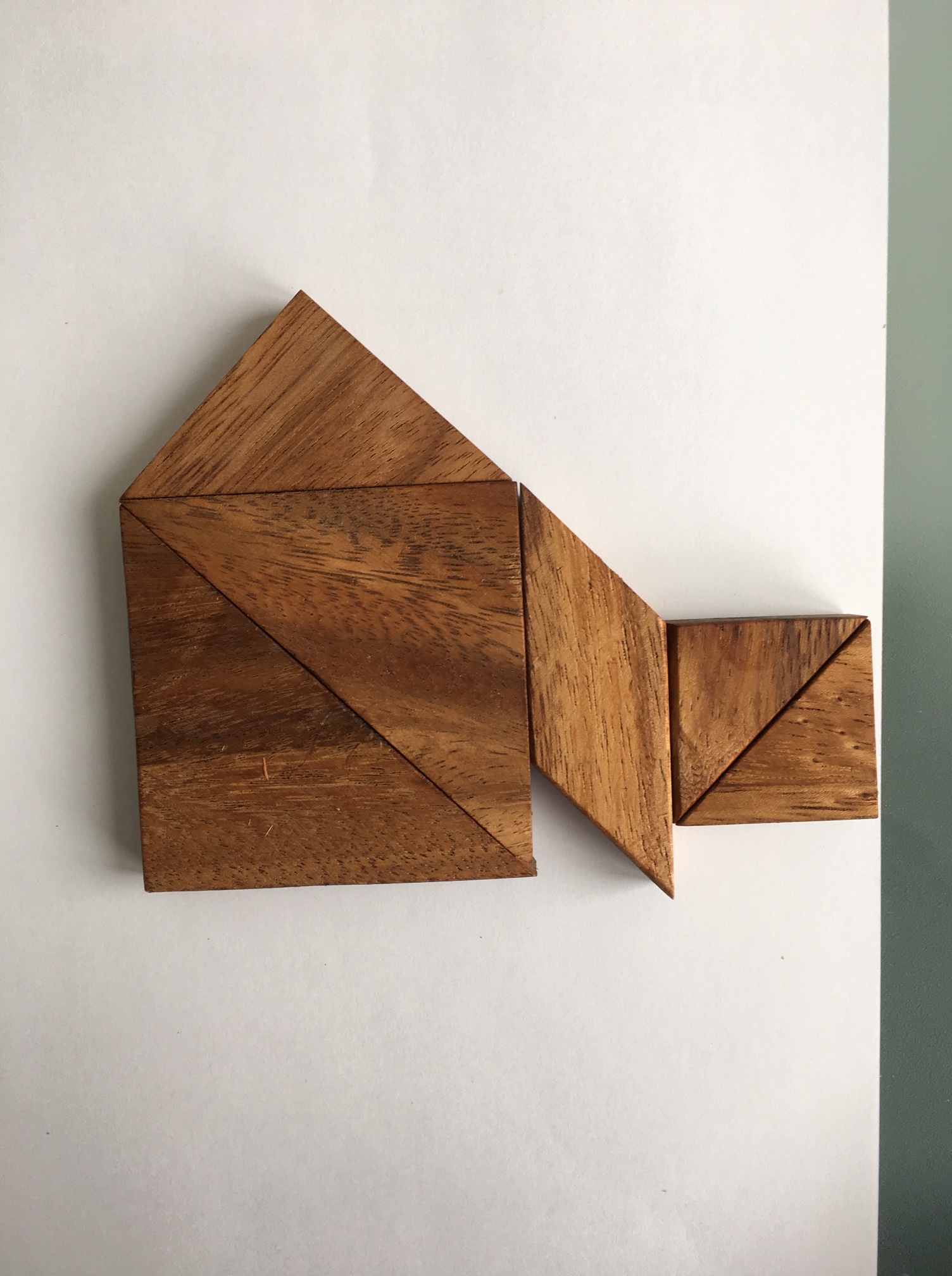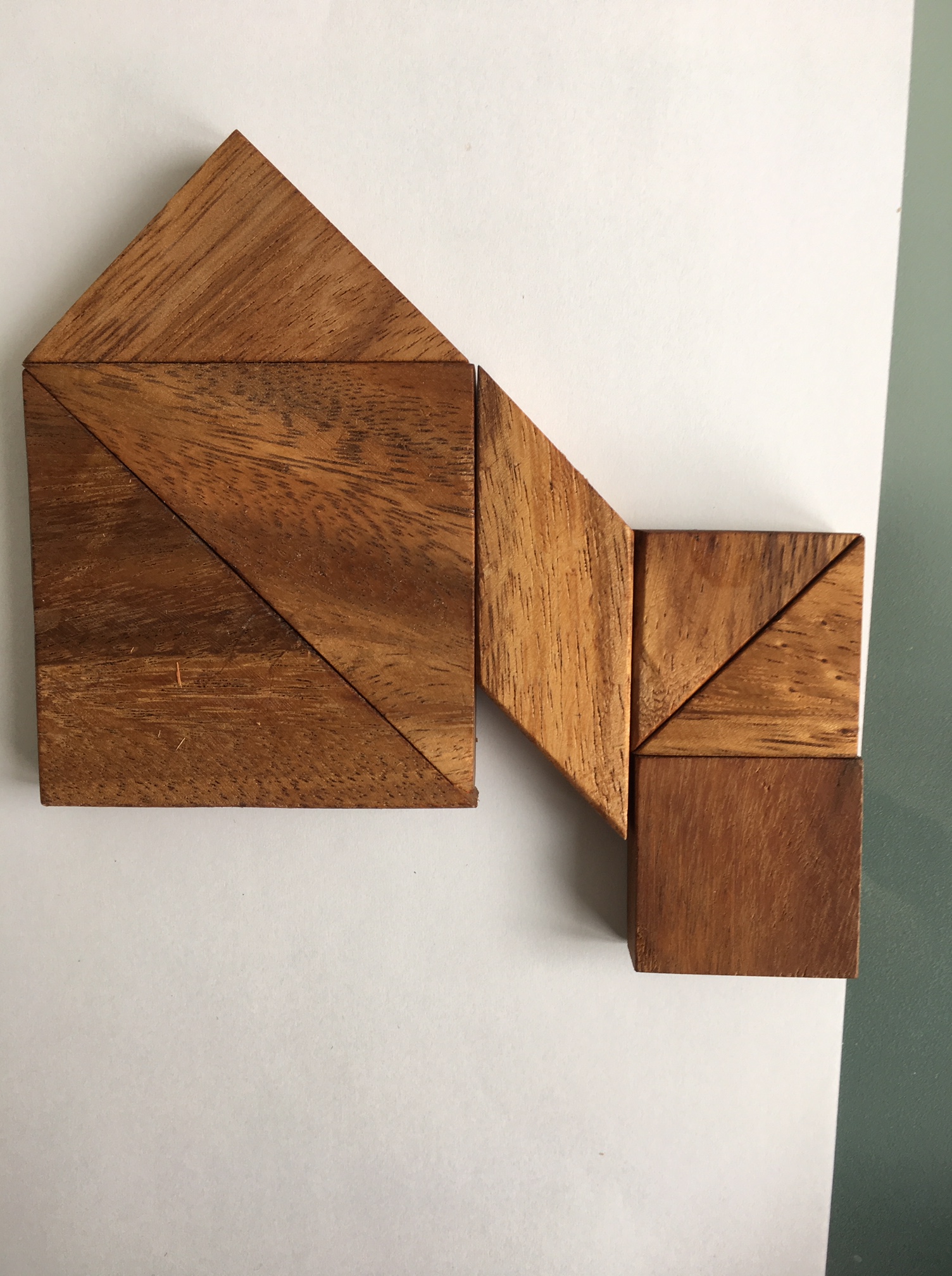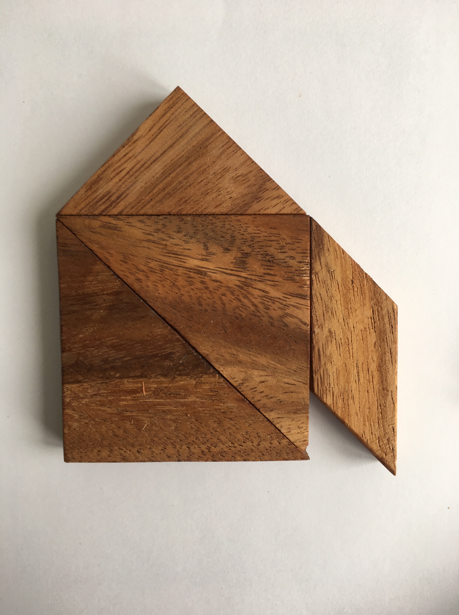 Sie können zu ganz anderen Formen zusammengesetzt werden – zu einem Haus, zu einer Katze usw. Wenn man ein Tangram-Spiel kauft, ist eine Anleitung mit verschiedenen Lösungsvorschlägen beigefügt.