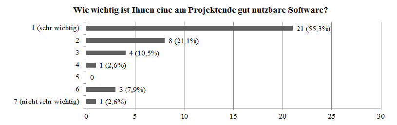 Insgesamt wird jedoch eine gut nutzbare Software und eine die Anforderungen erfüllende Software in der Wichtigkeit schlechter bewertet, als eine am Projektende funktionierende Software.