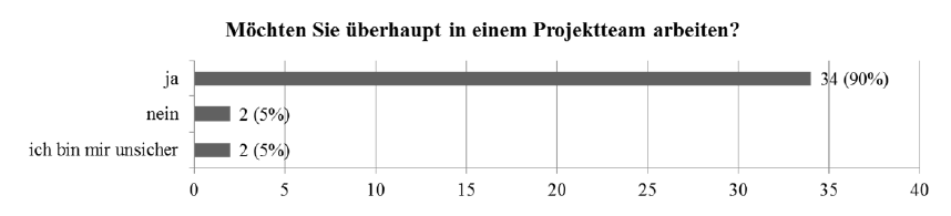 Das Item „Möchten Sie überhaupt in einem Projektteam arbeiten?“ basiert auf der Annahme, dass gerade in der öffentlichen Verwaltung die Aufgabenteilung selten zu einer Teamarbeit führt.