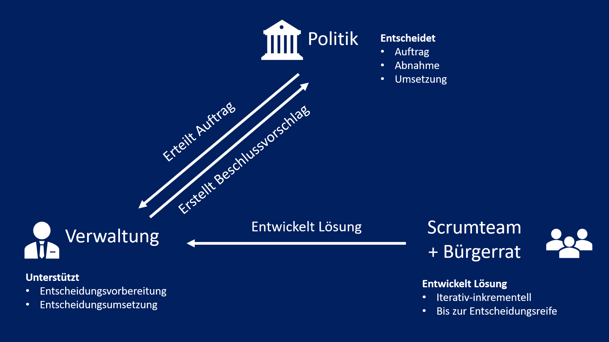 Politik beauftragt Verwaltung agil Lösung zu entwickeln mit Scrum und einem Bürgerrat