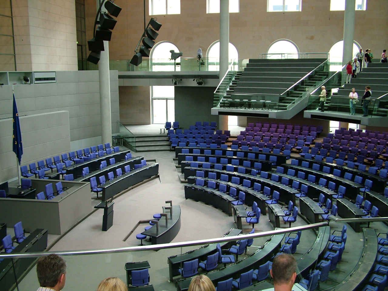 Innenansicht des Plenarsaals im Reichstag in Berlin, Deutschland, Wikipedia (gemeinfrei)