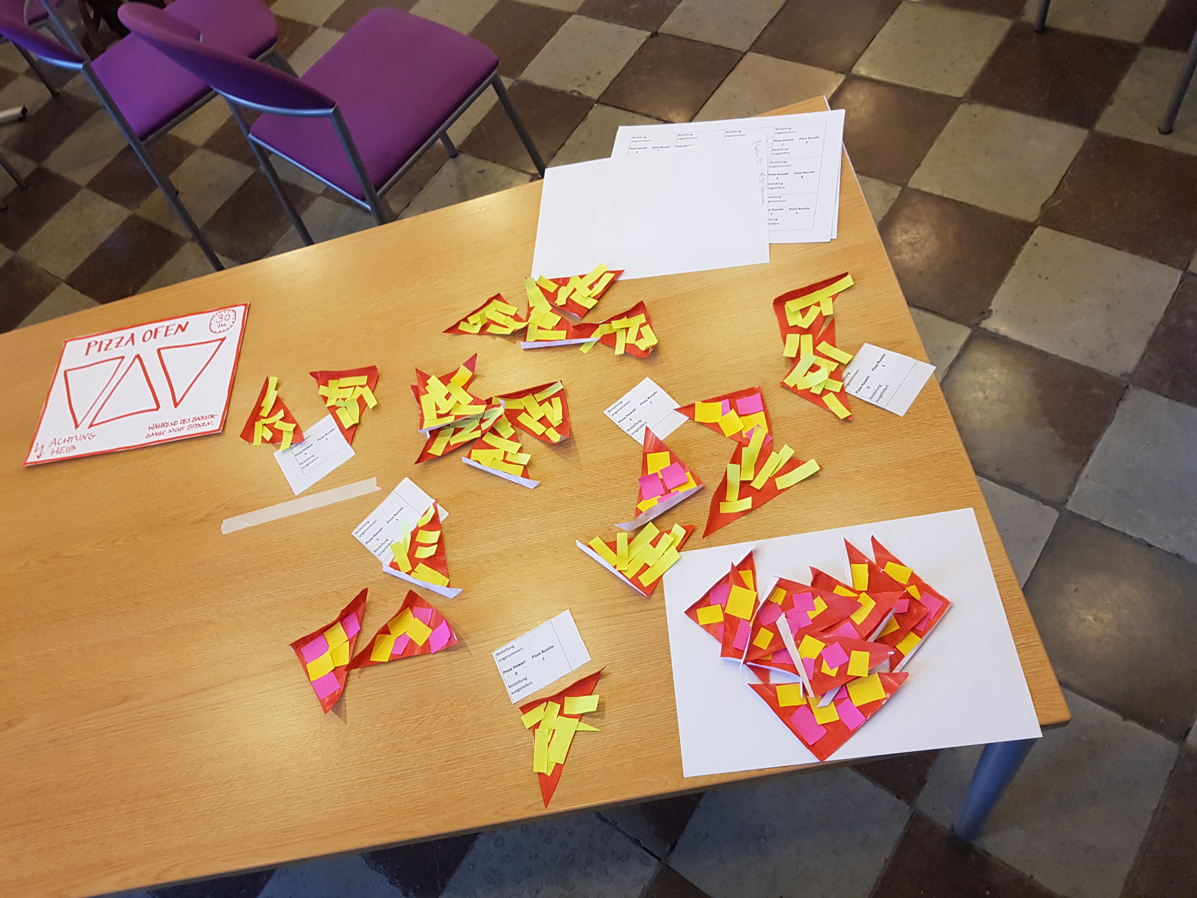 Ich habe immer noch ein Lächeln im Gesicht, wenn ich an den tollen Workshop denke, den wir als Team gemeinsam mit der Trainerin Ines Robbers /Anmerkung 1/ hatten, um das Prinzip hinter Kanban zu verstehen. Den ersten wirklich spaßigen Teil, in dem wir mit dem “Pizza Spiel” /Anmkerung 2/ selbst erfahren konnten, was arbeiten mit Kanban bedeuten kann. Und dann der zweite herausfordernde Teil, in dem wir basierend auf unserer Wertschöpfungskette und unseren Arbeitsbereichen anfingen, „unser Kanban-Board“ zu bauen. Das hängt nun bei uns im Büro und wir alle wissen: das ist erst der erste Versuch, ein Prototyp, der sich mit den Wochen und Monaten immer wieder verändern wird, weil wir ihn in der Praxis immer mehr verstehen, für uns passend verändern werden und noch besser nutzen können.