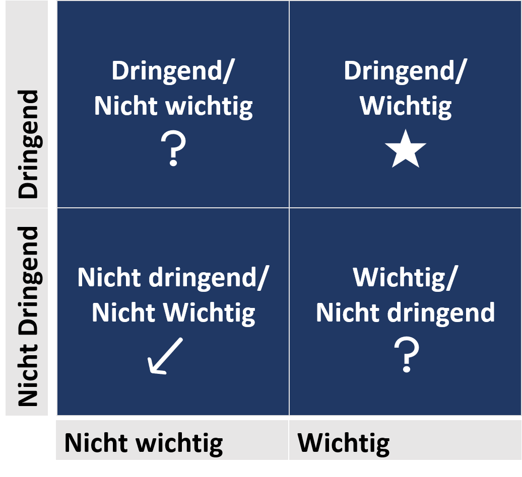 So ergibt sich eine 4 Feldermatrix, auf der wir entsprechende Prioritäten ableiten können: