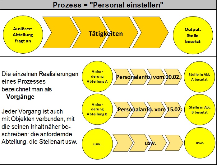 Auf der Grundlage des Vorgangsbegriffs kann man einen prozessorientierten Aktenplan aufstellen, der dann nicht mehr silo-orientiert ist wie herkömmliche Aktenpläne, sondern prozess-orientiert (das heißt die Zusammenarbeit in cross-funktionalen Teams unterstützt).