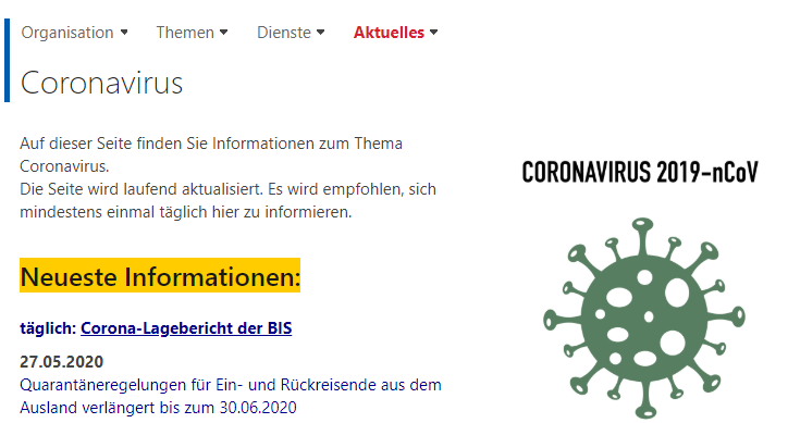 Dann kam aber doch ganz schnell eine sinnstiftende Aufgabe innerhalb meiner Organisation daher. In meine Abteilung gehört auch die Pflege des SharePoints (unser Intranet), daher begannen mein Kollege als Administrator und ich, auf unserem SharePoint zügig Informationsseiten zu Corona aufzubauen und zu füttern – mit allem, was über die Leitung an Corona-Infos und Hinweisen für die Beschäftigten und Führungskräfte zu veränderten Aufgabenwahrnehmung, Rechtslage etc. hereinkam und das war wirklich viel!