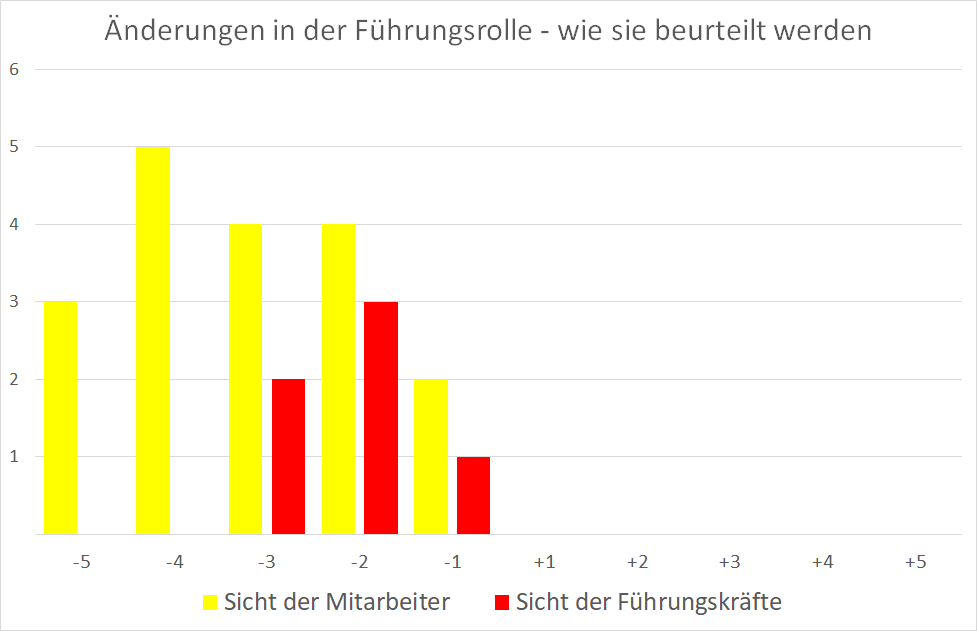 Zum Teil zumindest bezogen sich die Bewertungen der Führungskräfte offenbar auf die Hierarchiestufen über ihnen – nicht auf ihre eigene Rolle.
