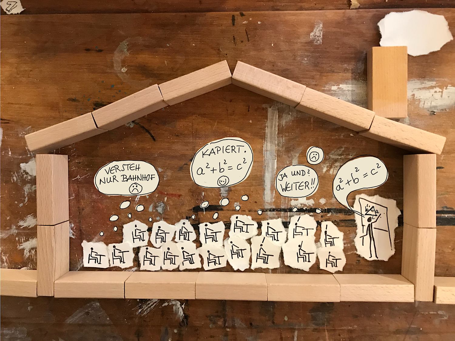 Die Sehnsucht nach der „Normalität“ ist in Zeiten des Onlinelernens logischerweise groß. Allerdings muss man ehrlicherweise sagen, dass es bei den Lernenden meist nicht in erster Linie um schulische Inhalte geht, sondern um die aktuell fehlende soziale Vernetzung. Um das Menschsein eben. Tauchen wir zurück in die analoge Vergangenheit vor zwei Jahren und schauen auf die Gefühlswelten der Akteure im Fachunterricht und nur auf den Lernstoff bezogen, dann sieht die Visualisierung dazu doch oft etwa so aus: