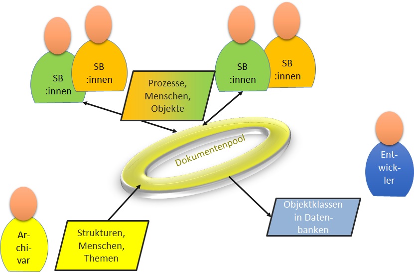 In der Papierwelt gibt es zwei Sichten auf die Schriftgutverwaltung: Archivare und Registratoren auf der einen Seite, Sachbearbeiter:innen und Führungskräfte auf der anderen Seite. In der digitalen Welt werden sogar drei Sichten daraus: die Entwickler von DMS-Software kommen dazu (und müssen die Sichten der anderen Beteiligten gut verstehen).