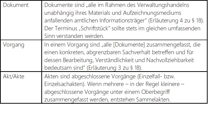 Definition der Begriffe Akte – Vorgang – Dokument