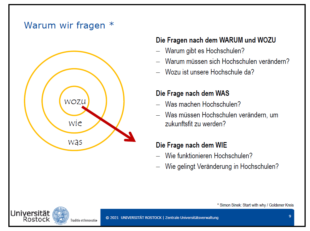 Die drei Fachimpulse, die im April, Mai und Juni stattfanden bauten anhand des Goldenen Kreises von Simon Sinek aufeinander auf, zuerst das „Warum und Wozu“, dann die Frage nach dem „Was“ und zuletzt nach dem „Wie“.