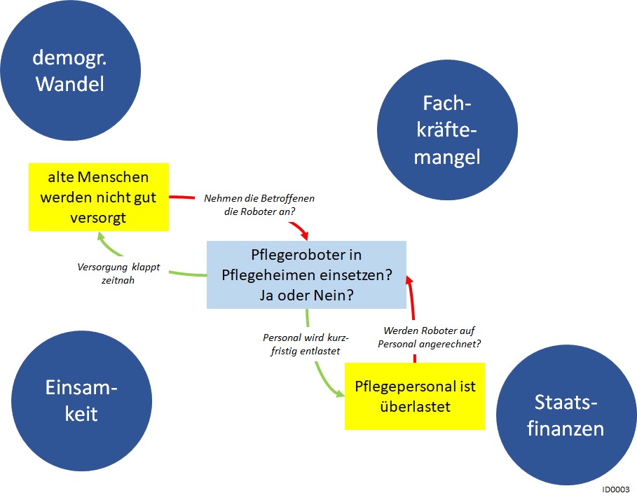 Die Autor:innen von NEUSTAAT erheben nicht den Anspruch, agil zu argumentieren. Es geht ihnen offenbar um das Thema „Digitalisierung“, nicht darum, neue Reflexions- oder Entscheidungsmethoden in die Verwaltung einzuführen. Sie wägen ganz klassisch zwischen Pro und Contra einer Maßnahme ab – und weil sie modern und für die Digitalisierung sind, stellen sie auch eher Argumente für die Pflegeroboter zusammen als dagegen.
