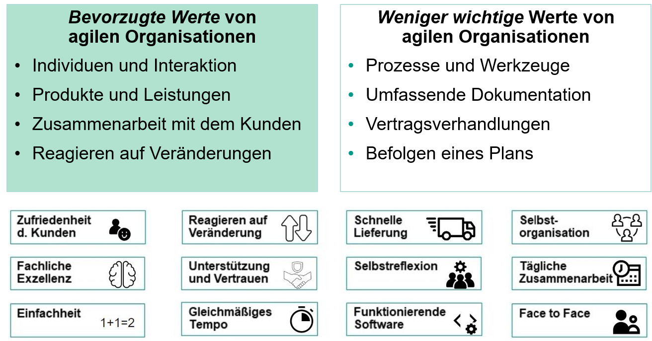 Abbildung 3: Agile Werte und Prinzipien (Agiles Manifest; eigene Darstellung)