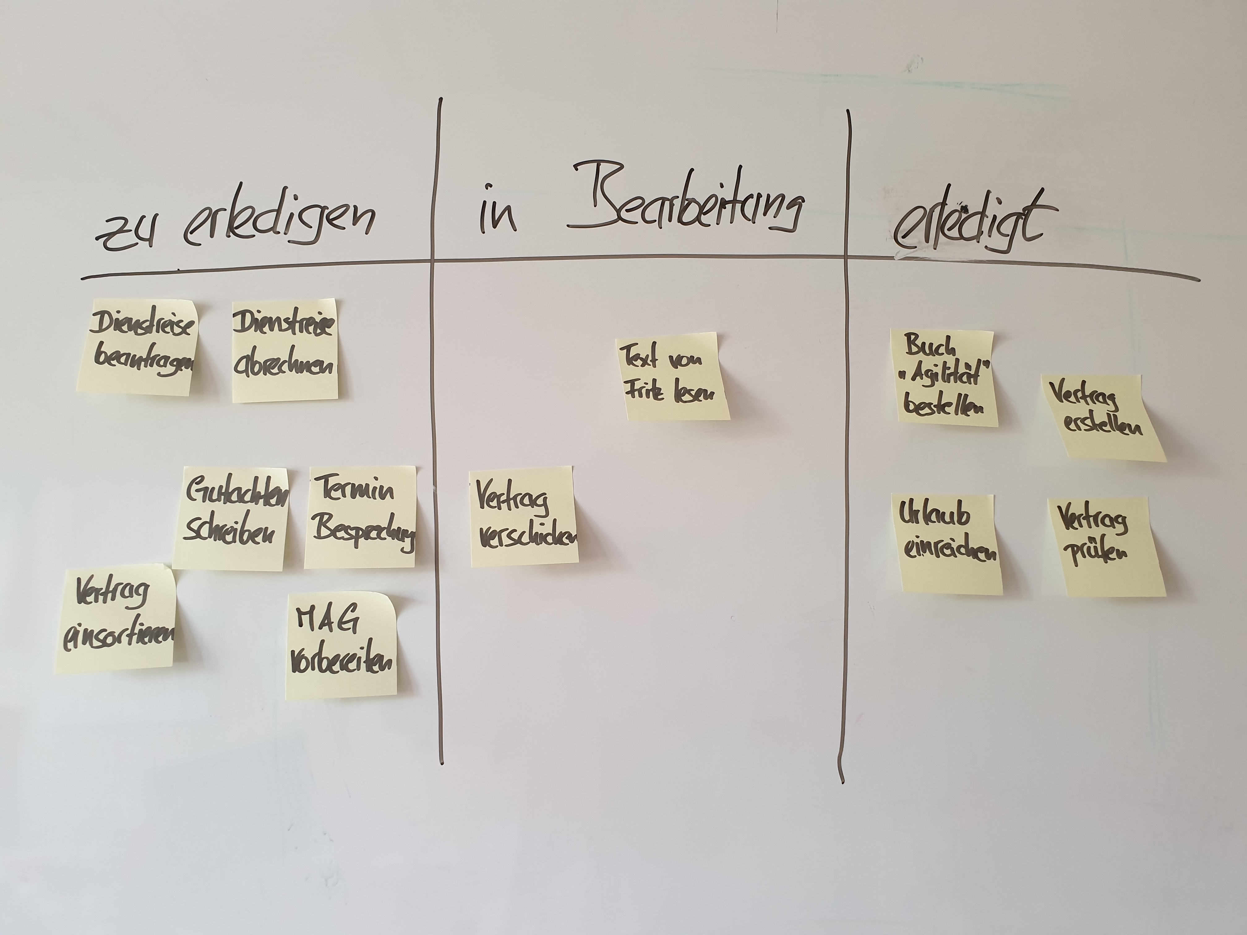 Abbildung 1: Rudimentäres Kanban auf einem Whiteboard