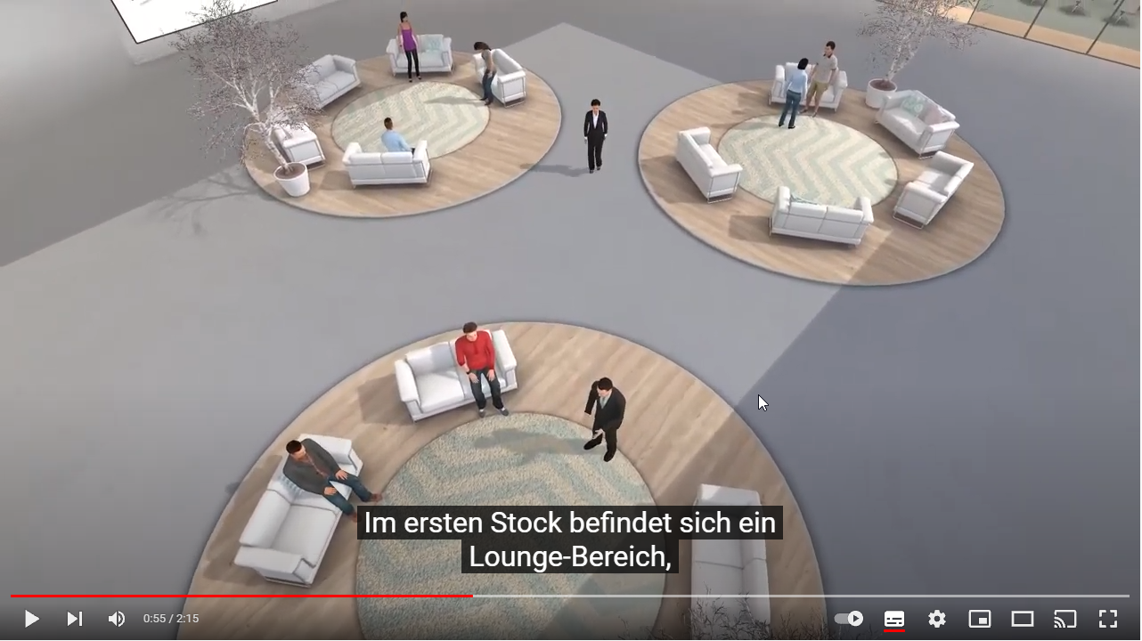 In TriCAT Spaces baut man sich am Anfang einen Avatar zusammen. Mit diesem bewegt man sich durch die virtuellen Veranstaltungsräume. Wenn man beispielsweise an einem Meeting teilnehmen will, betritt man den Raum und setzt sich an einen freien Platz – so wie im echten Leben. Und folgt der Präsentation an der Wand – wie im echten Leben. Das ist schon ziemlich genial.