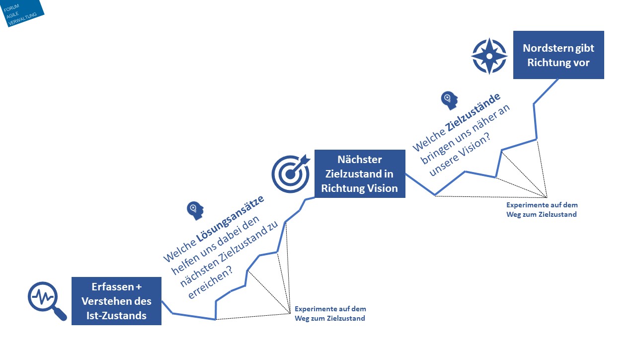 Ich habe mich in meinen letzten Blogartikeln für das Forum Agile Verwaltung mehrfach mit dem Thema Kaizen und Verbesserung auseinandergesetzt. Daran möchte ich auch heute wieder anknüpfen und dabei ein Teilelement in den Fokus stellen, das wir brauchen, um unseren Bemühungen eine Richtung zu geben. Eine Navigationshilfe, die es uns ermöglicht, den „Kurs“ zu bestimmen: den Nordstern als Teil der Verbesserungskata. Und wieder bediene ich mich beim berühmten japanischen Automobilkonzern Toyota.