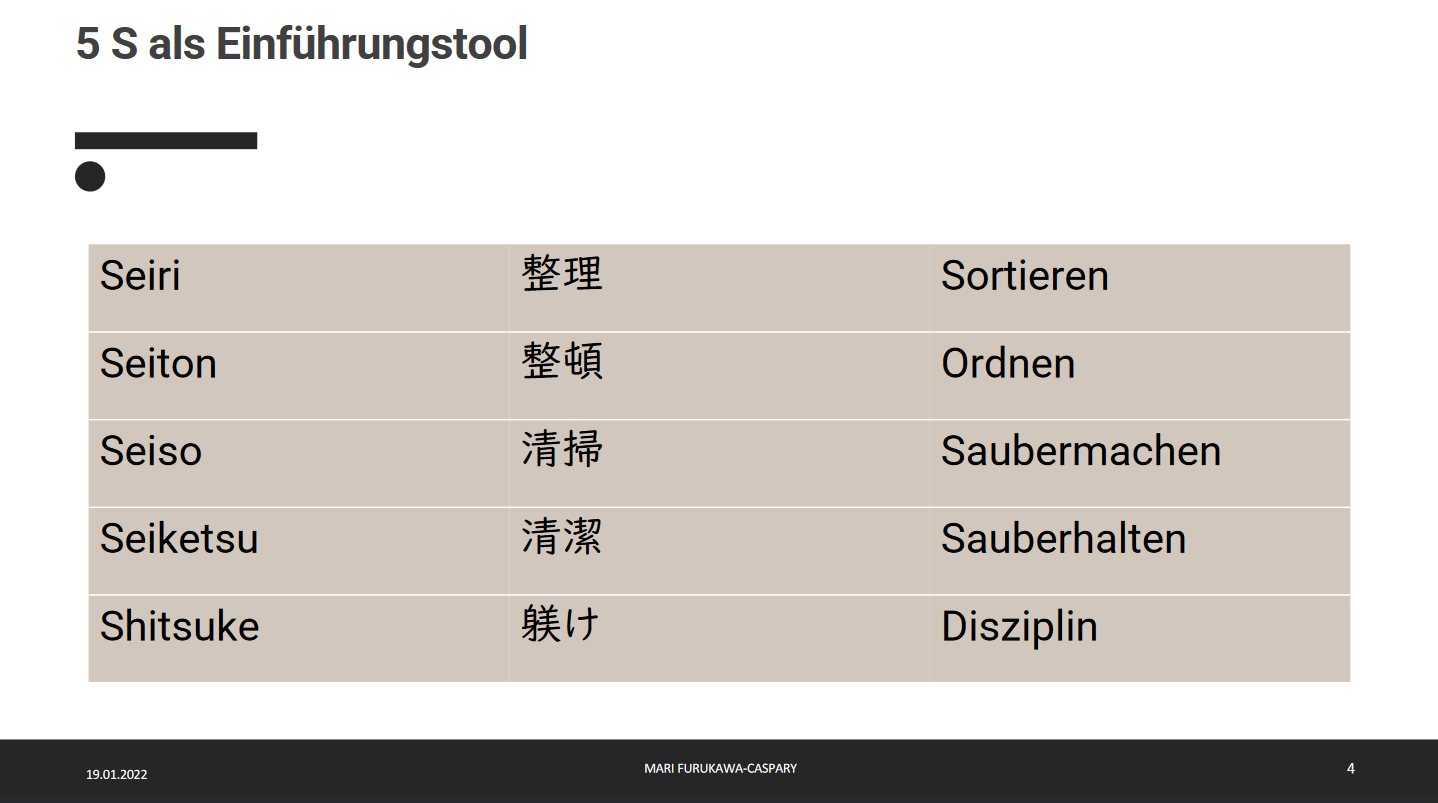 Kennen Sie das auch? Man macht einen mehrwöchigen Kurs (Lean auf gut deutsch), man tauscht sich aus mit den anderen Kursteilnehmer:innen, man hört der Referentin (Mari Furukawa-Caspary) zu, man merkt wie die Kursinhalte im Laufe der Wochen langsam immer tiefer „einsickern“ und dann merkt man plötzlich, dass das, was man da lernt und gelernt hat, das ganze Leben betrifft. Plötzlich gibt es überall Assoziationen und bei mir ist es auch so.