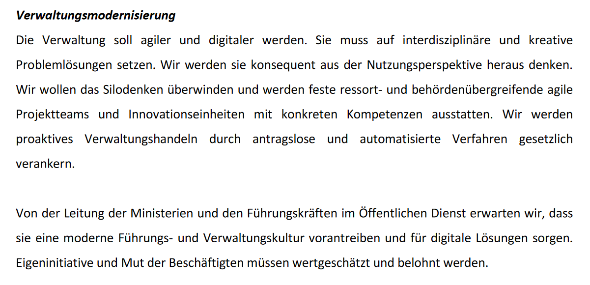 Zusammen mit anderen Ebenen wie dem Bund, wo im Koalitionsvertrag jetzt steht, dass wir eine attraktive, moderne Verwaltung werden möchten – bürgerorientiert und gut funktionierend.