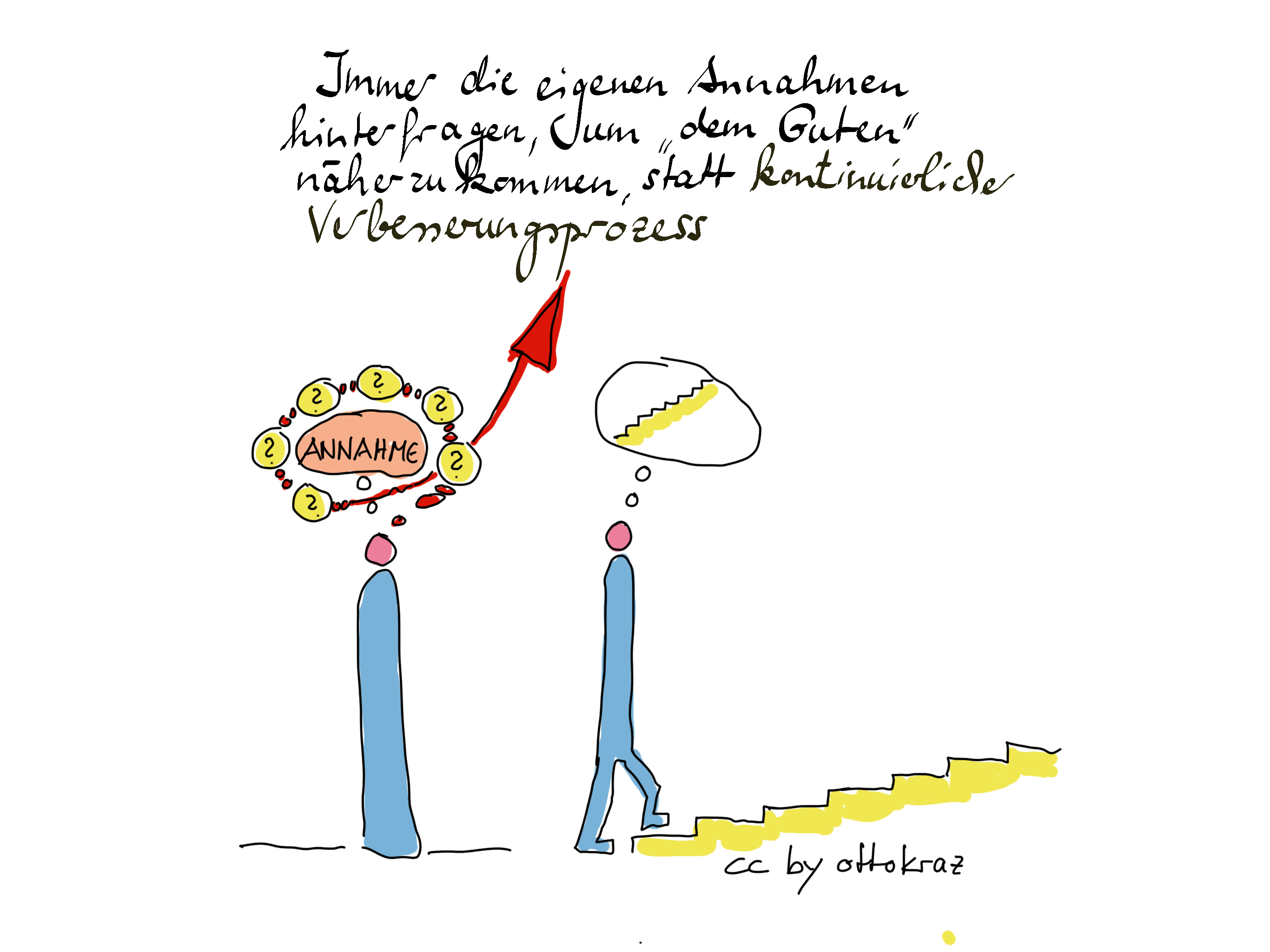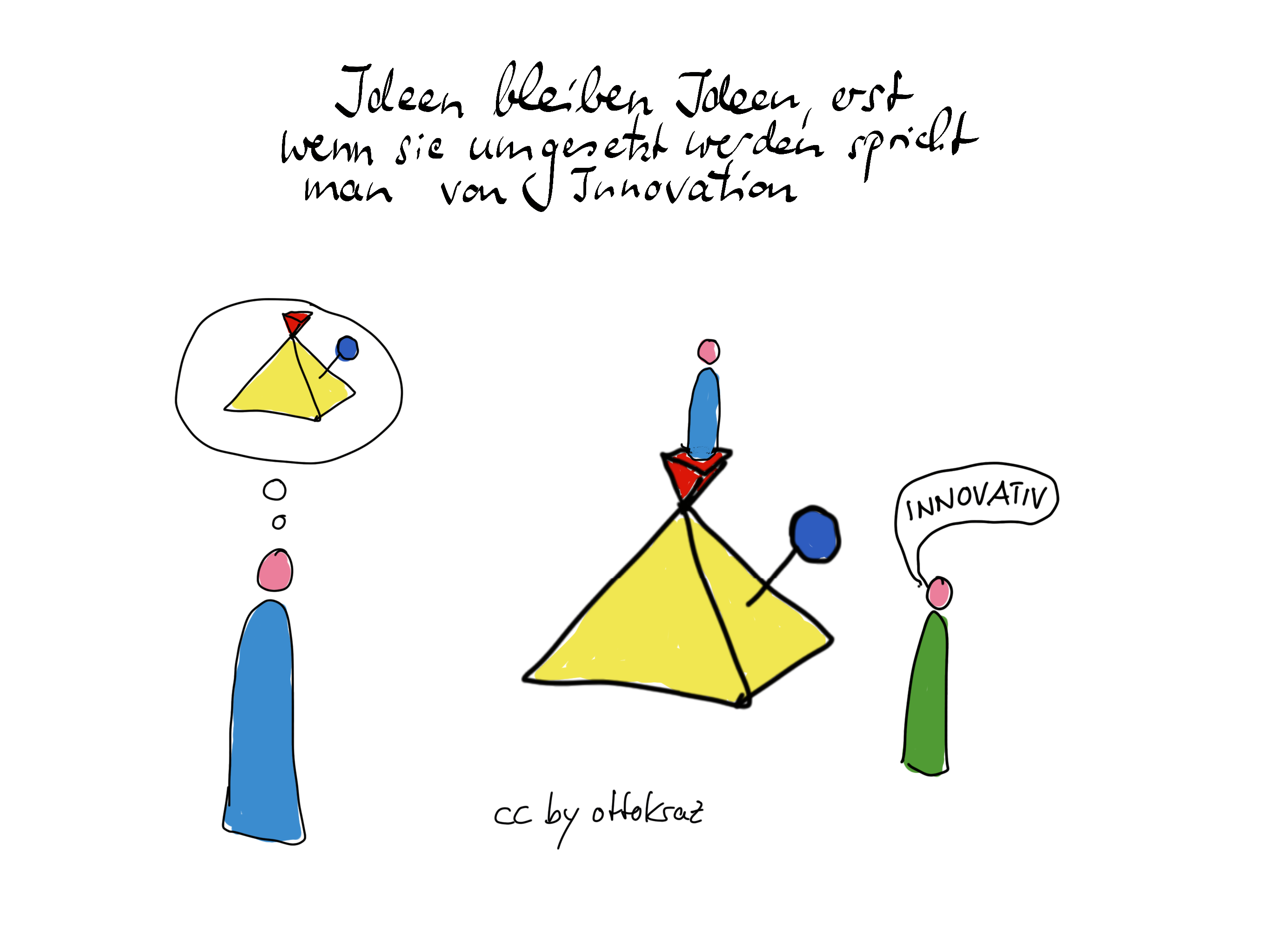 Otto Kraz, begnadeter FAVorit unter den Visualisierern, hatte sich zum Ana-, nein: Aha-Chronisten erklärt. Er hatte nämlich die Konferenz-Teilnehmer:innen aufgefordert, ihm hautnah, brühwarm und aus dem Augenblick heraus ihre Aha-Erlebnisse aus den Sessions zukommen zu lassen – – alle plötzlichen Erleuchtungen und Mustererkennungen der versammelten UI’s (unkünstlichen Intelligenzen). Und diese Erkenntnisse, quasi die konzentrierten Kommunikationsextrakte aus den Sessions, setzte er parallel zu ihrem Eingang den ganzen Tag über in Bilder um – ein Bilderstreifen aus 36 Cartoons mit den Highlights (Erleuchtungen) der Konferenzbesucher.