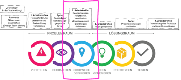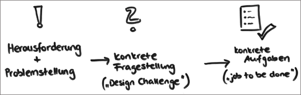- Schärfung der Design Challenge und der sich daraus ergebenden Aufgaben für das Team auf Basis der Gesprächserkenntnisse