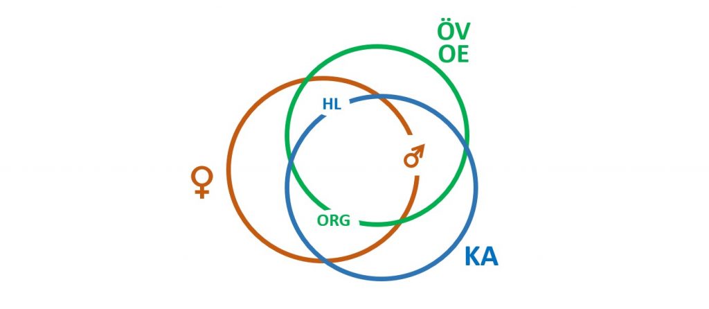 Aber mir ist noch etwas anderes aufgefallen, das mit der persönlichen Zusammensetzung dieses Trios zu tun hat. Zwei von uns leben in der selben Stadt in Süddeutschland, eine im Norden Deutschlands. Zwei Personen im Vorstand haben den selben beruflichen Hintergrund: lange Erfahrung in der Organisationsentwicklung in öffentlichen Verwaltungen. Die dritte bringt viel Verwaltungswissen aus der Organisation eines kleinen Unternehmens ein. Und wir sind zwei Frauen und ein Mann.
