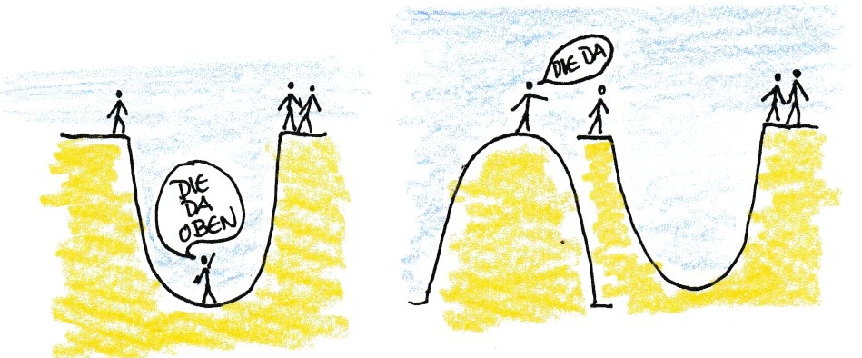 Man könnte ja auch einmal folgenden Ansatz nehmen: Richtig gut wäre es doch für unsere Demokratie, Schule würde echte Stärke vermitteln. (Keine Sorge, sie darf natürlich auch viele, viele Inhalte vermitteln.) Aber auf alle Fälle ganz viel Stärke und Selbstbewusstsein. Auf dass in einer späteren politischen Auseinandersetzung z.B. aus dieser „die da oben“ Kritik eine „die da“ Kritik auf Augenhöhe stattfinden kann. Für alle. Ja das fände ich ganz wundervoll.
