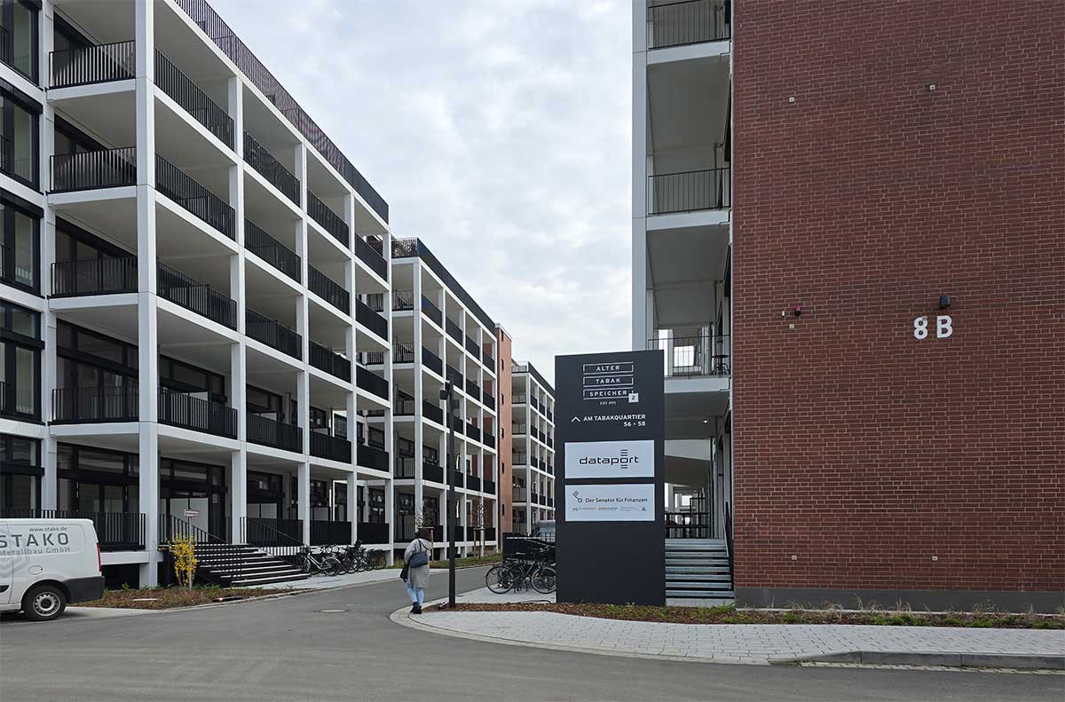 Bremens Tabakquartier: Wo früher Europas größte Zigarettenfabrik war, entsteht seit einigen Jahren ein neues Quartier mit gemischter Nutzung. Ein Hotel, Wohnungen, Gastronomie, Grünflächen und eine Kita gehören dazu. Und auch ein Verwaltungsgebäude. Im ehemalige Tabakspeicher II sind Teile der der bremischen Verwaltung angesiedelt worden. Genauer: Die Digitalisierungsabteilung und die Referate für Organisation und Aus- und Fortbildung des Senators für Finanzen.