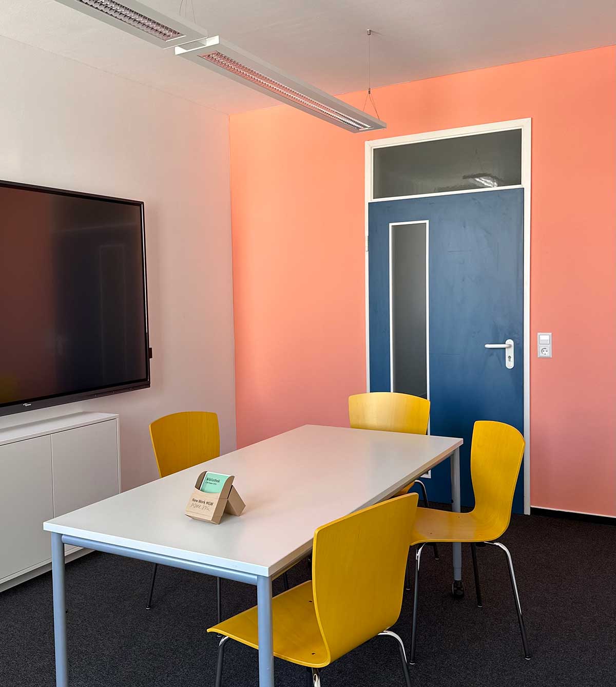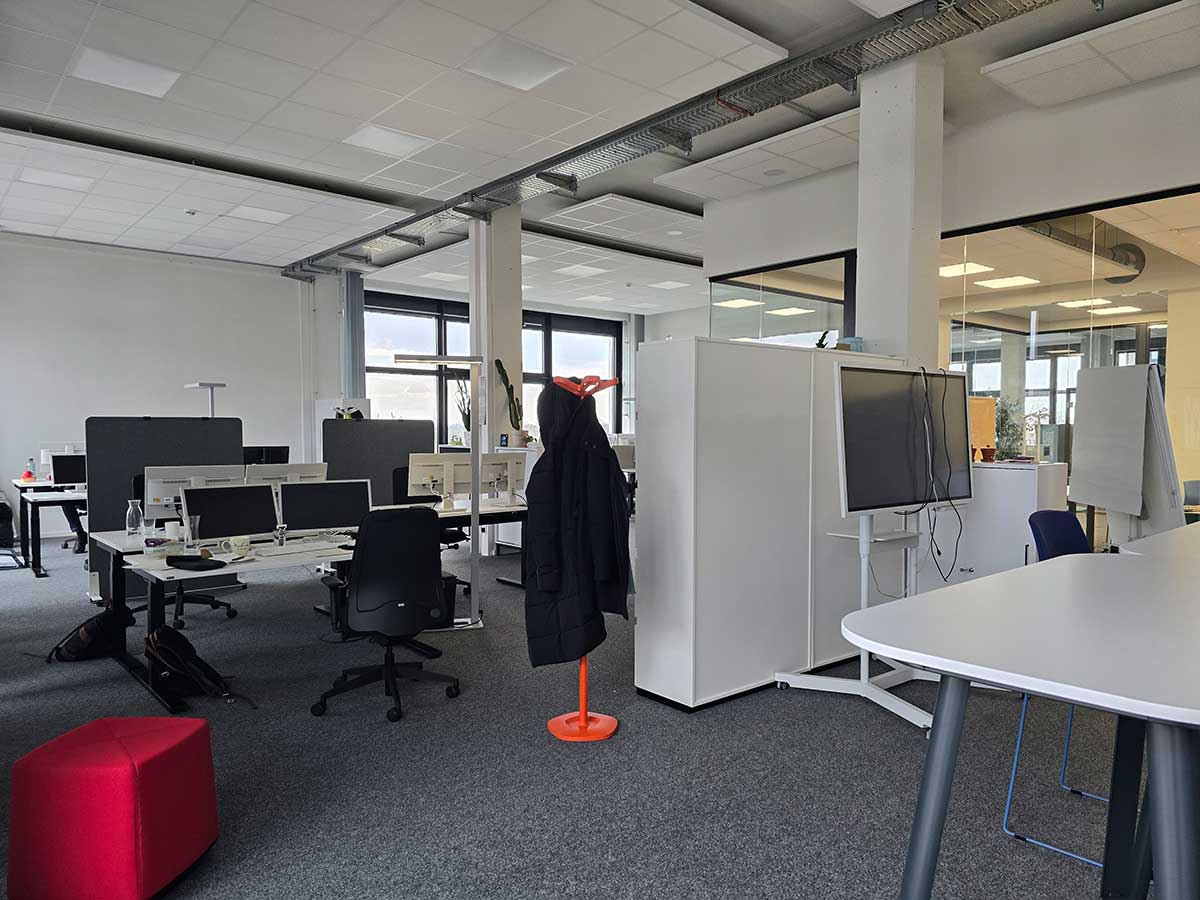 Schon während Corona zeigte sich, dass die Arbeit im Home-Office nicht nur das Ansteckungsrisiko vermindert, sondern für viele Mitarbeitende große Vorteile hat. Um das hybride Arbeiten zu institutionalisieren und gleichzeitig etwas sinnvolles mit den freiwerdenden Flächen anzufangen, wurde ein „New-Work-Projekt“ ins Leben gerufen. Unter externer Moderation und Unterstützung durch die Stabsstelle für Verwaltungsmodernisierung der Stadt Karlsruhe konnten die Mitarbeitenden, egal ob Sachbearbeiterin oder Führungskraft, gestalten und entscheiden, wie man die Raumressourcen verfügbar macht und was mit den freien Raumreserven geschehen soll.