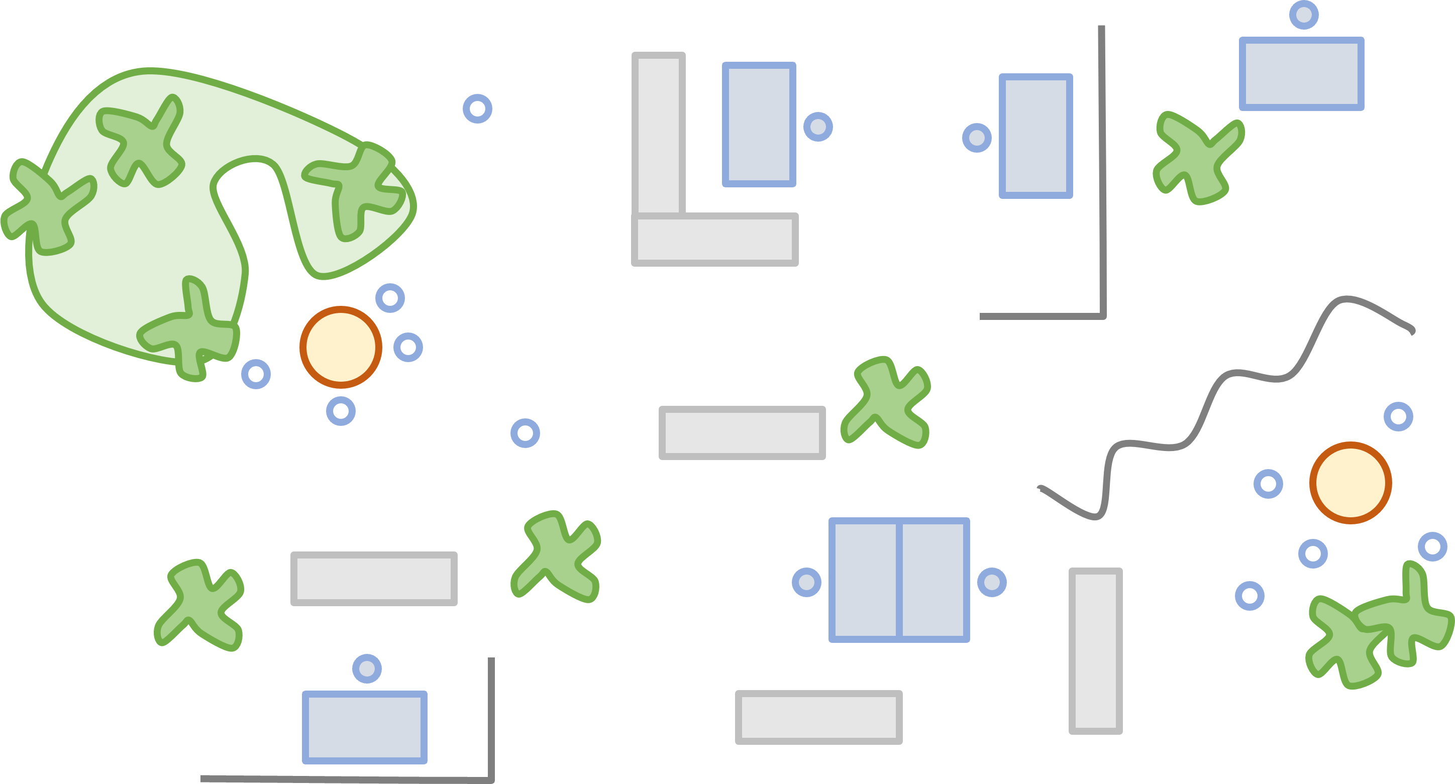 Ein anderer Ansatz als bloßes Geldsparen ist, die freien Raumressourcen für neue Raumkonzepte zu verwenden. Hybrides, ortsverteiltes Arbeiten, agile, teamorientierte Arbeitsweisen und die zunehmende Projektarbeit in Verwaltungen benötigen ohnehin zusätzlichen Platz und neue Raumtypologien.