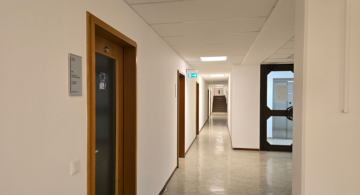 Wenn Nutzung und Gebäude es zulassen, kann man sogar daran denken, die klassische Zellenstrukturen ganz aufzugeben und Bürolandschaften aufzubauen.